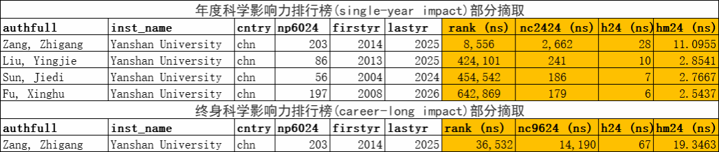 信息科学与工程学院(软件学院)4位学者入选全球前2%顶尖科学家榜单