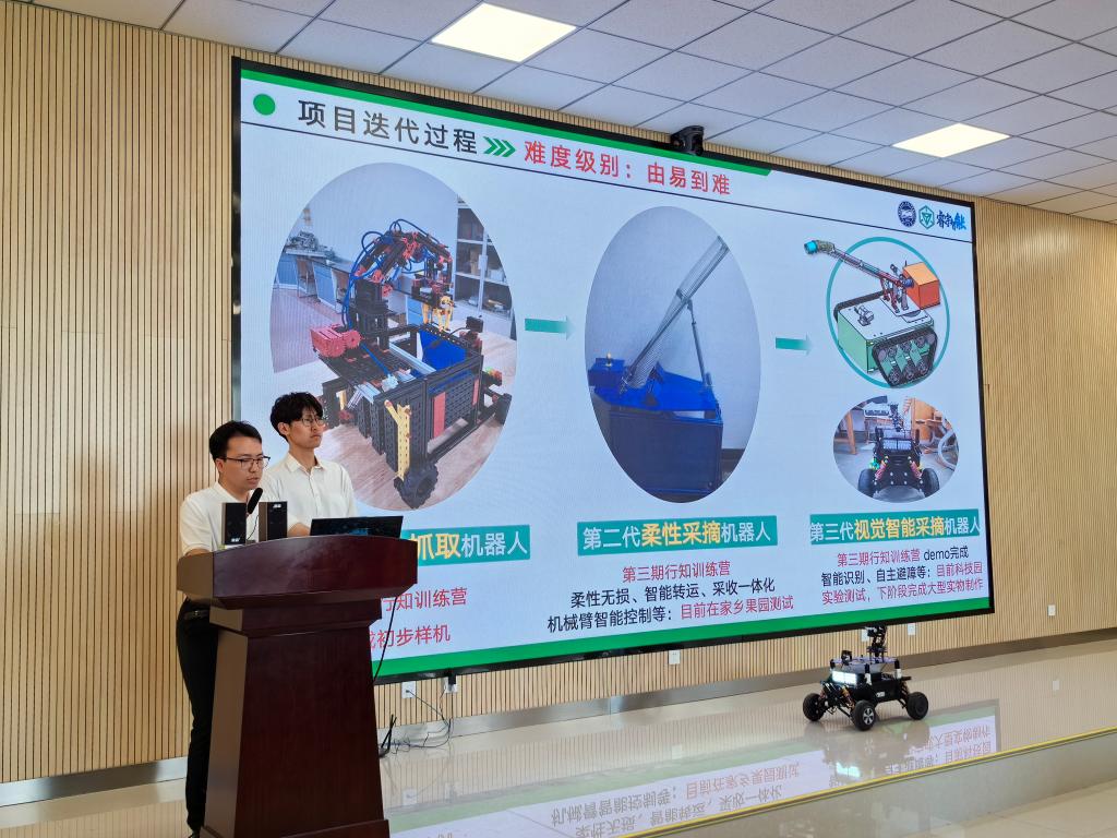 会议开始,第三期“行知训练营”营员按照小组顺序详细汇报项目思路、进展情况以及项目取得的成果,总结项目实施过程中遇到的技术问题、解决方案及突破点,并对项目的未来前景进行了规划。现场嘉宾对项目核心问题进行提问、并对学生们在项目实施过程中遇到的疑难问题进行技术指导和点评。通过本次路演,学生们总结了自己的收获,拓宽了思路,坚定了未来的发展方向和目标。