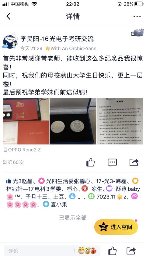 优秀毕业生代表结合本人及所在集体的先优事迹和学习经验通过网络会议APP进行宣讲,师生通过网络交流学风、班风、考研等方面经验和方法,教有教的针对性,学有学的必要性,为今后学业发展提供有益参考。电子科学与技术专业20届毕业生李昊阳,以优异成绩考取哈尔滨工业大学物理电子学专业,大学期间获得高中教师资格证书,他所做的考研经验分享准备充分、内容详实,从反思到见解,从问题到方法,重点突出、利于接受。 他的感受是“用在母校所学帮扶师弟师妹,对于自己本身也是一种学习成长和进步。”