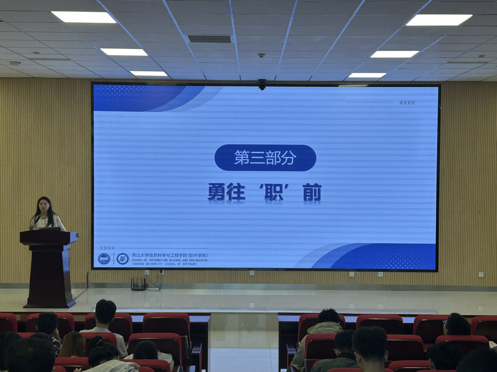 为切实做好2025届本科毕业生就业工作,推动毕业生实现高质量就业,信息科学与工程学院(软件学院)于9月21日至9月24日在信息馆行知报告厅召开2025届全体本科毕业生就业动员会。会议由2025届本科毕业班辅导员李围、刘许瑞、马琳琳主讲。