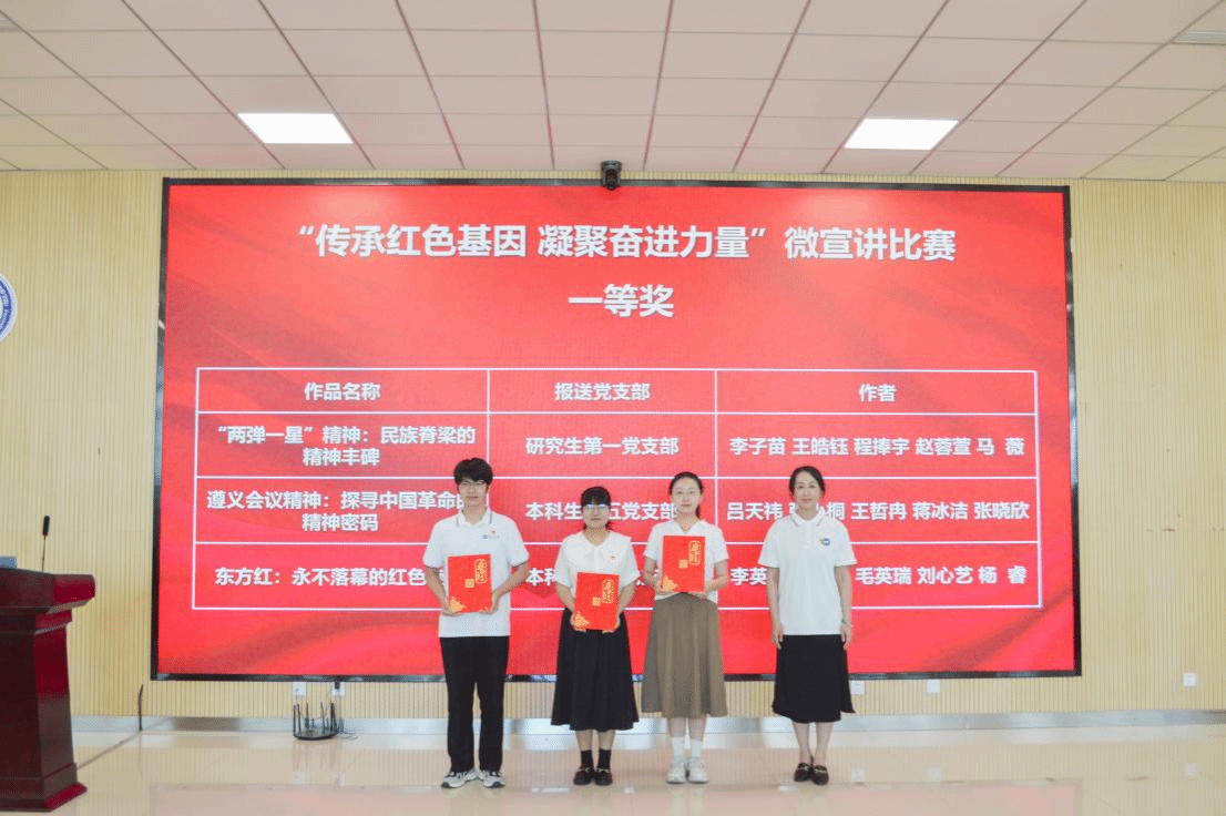 为喜迎建党104周年,学院党委精心组织“传承红色基因 凝聚奋进力量”微宣讲比赛,吸引全院党员踊跃参与,共征集到 69 件参赛作品。经严格评审,最终评选出特等奖 1 件、一等奖 3 件、二等奖 6 件、三等奖 10 件。活动现场,李浩然宣读获奖名单,随后学院领导依次为获奖者颁发荣誉证书,表彰其优异表现。颁奖环节结束后,王昂、李子苗等 5 位获奖代表围绕革命先驱事迹、重大战役历史、红色经典解读、中国精神传承等主题,带来了一场场精彩宣讲。他们以生动的语言、饱满的热情,深刻诠释红色精神内涵,充分展现了学生党员扎实的理论素养与深厚的爱党爱国情怀。
